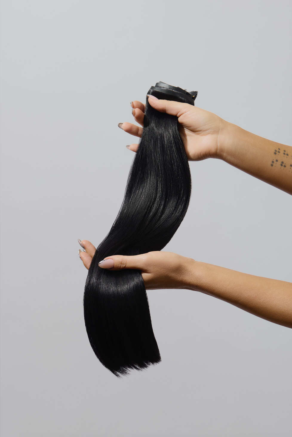 After you complete proper hair aftercare, your extensions need to be stored with equal consideration. Proper storage is crucial to keeping your hair silky smooth. When your SHAE hair is not in use, be sure to snap all clips shut before storing. Ideally, you would wrap, or hang, the wefts in a silk bag or storage case. Your extensions should be completely dry and tucked away from direct sunlight in a cool, dry place.